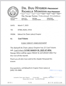 Bahastl’ah Chapter Coal Tickets EXPIRES MARCH 28 AT 4 PM