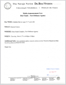 NN Office of Dine’ Youth – Fort Defiance Agency