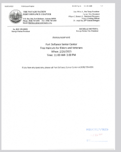 Ft. Defiance Chapter Senior Center Free Haircuts for Elders and Veterans
