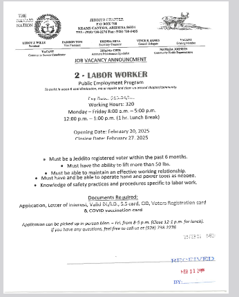 Jeddito Chapter PEP Positions 2 -Labor Workers Needed