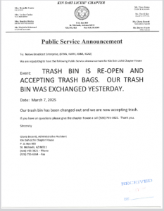 Kin Dah Lichii Chapter Trash Bin Re-Open