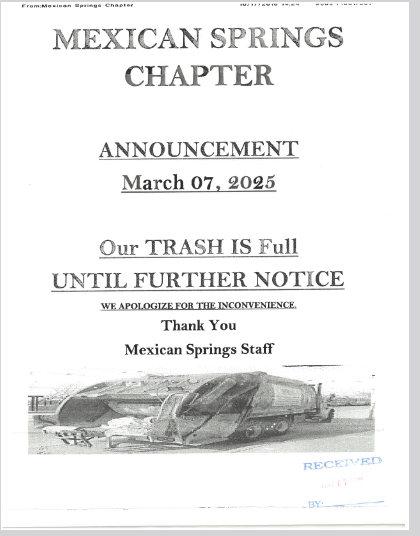 Mexican Springs Chapter Trash Bin is Full