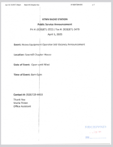 Sawmill Chapter Job Announcement for a PEP Position HEO